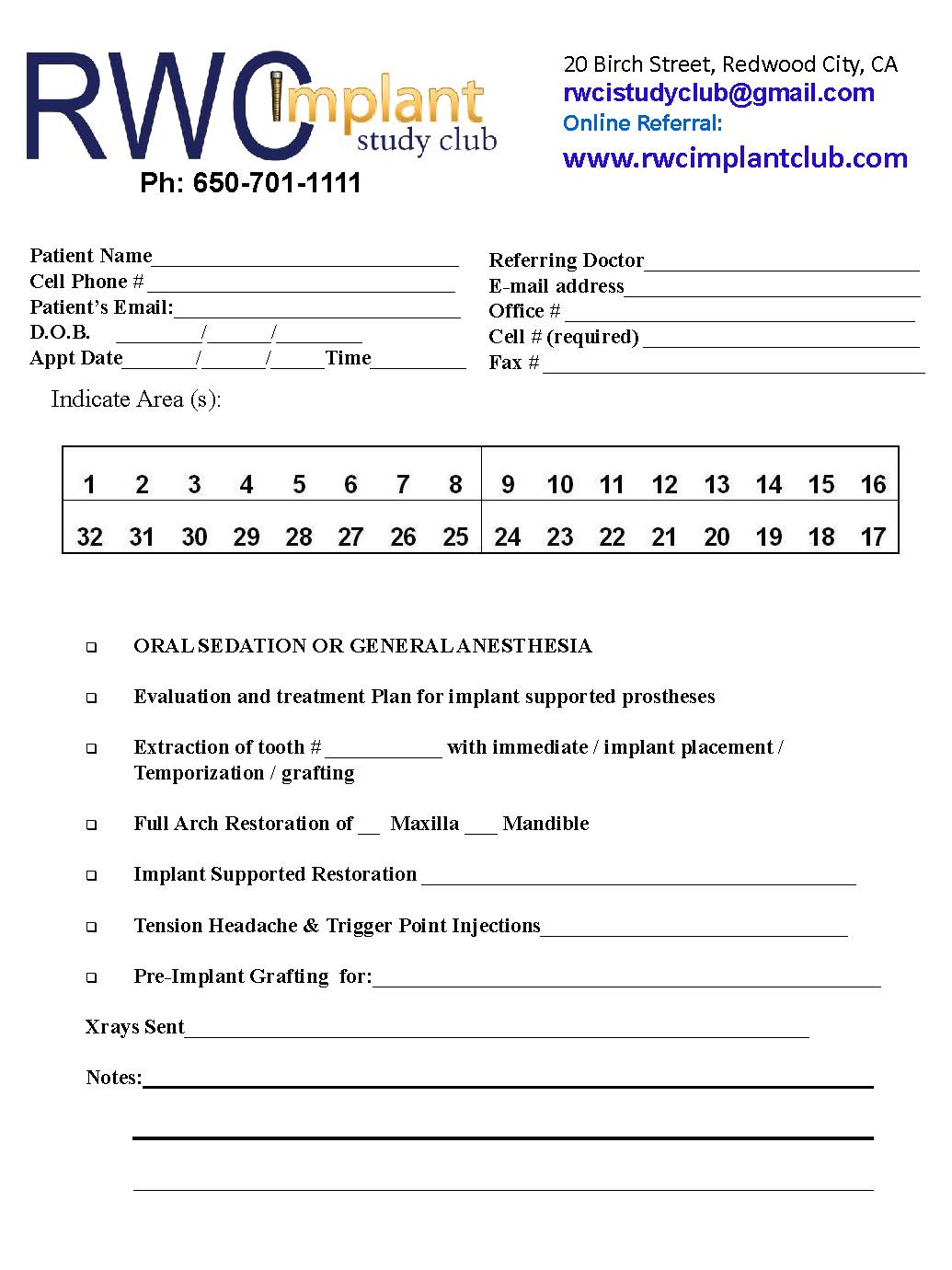 - Referral from their general dentist or schedule for a complimentary consultation by calling (650)701-1111 and mention the RWC Study Club program.